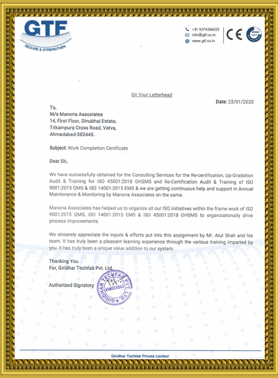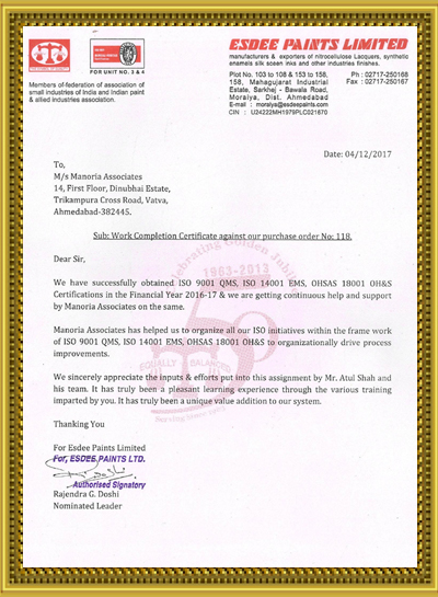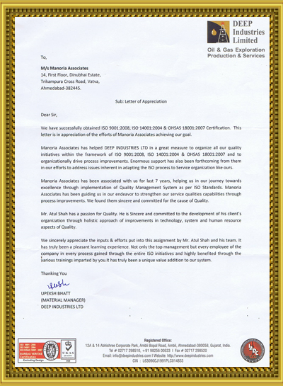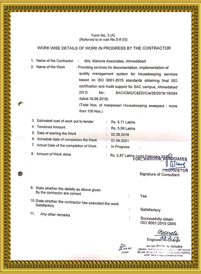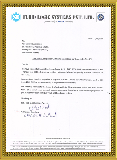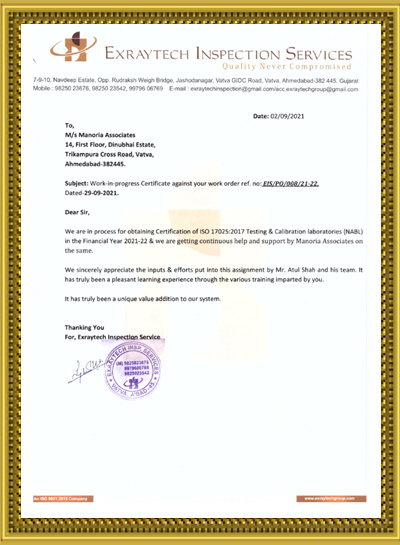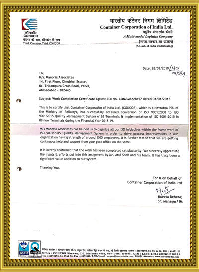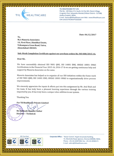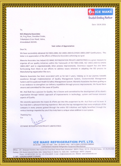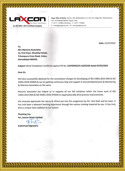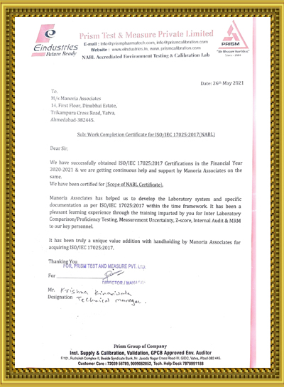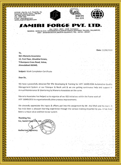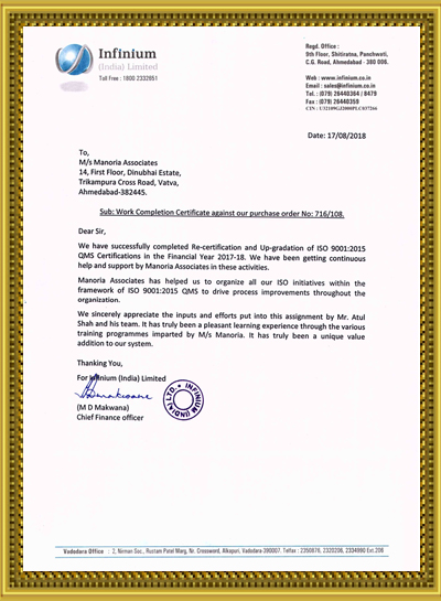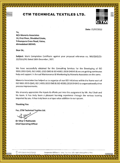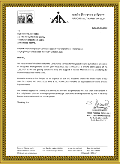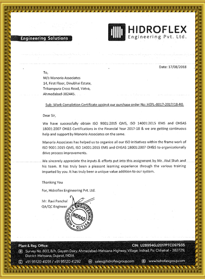 The Consultants at MANORIA ASSOCIATES have revolutionized the concept of providing Quality Consultancy Services by value addition, cost effective & professional services which played a major role in their acceptance by several medium & large organizations and now focusing small Industries too. We have successfully completed more than 700+ consultancy jobs for SA 8000 / ISO 9001 / ISO 13485 / ISO 14001 / ISO 15378/ IATF 16949 / ISO 17025 / ISO 20000-1 / ISO 22000 / FSSC 22000 / ISO 26000 / ISO 27001 / ISO 30000 / ISO 31000 / ISO 45001 / ISO 50001 / ISO 55000 / AS 9100 / 5S Process Improvement / BRC Food & Packaging / BSCI / CE Marking / CGMP- GMP – WHOGMP / Global GAP / GOTS / FSC / HACCP / HALAL / KOSHER / MDR 2020 / IKEA – IWAY / SMETA – SEDEX / Third Party Inspection / Management Consultancy etc.