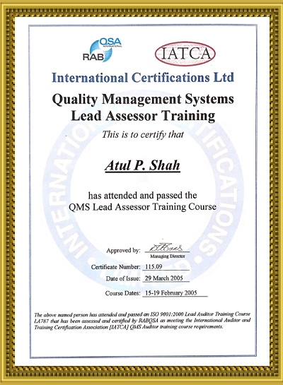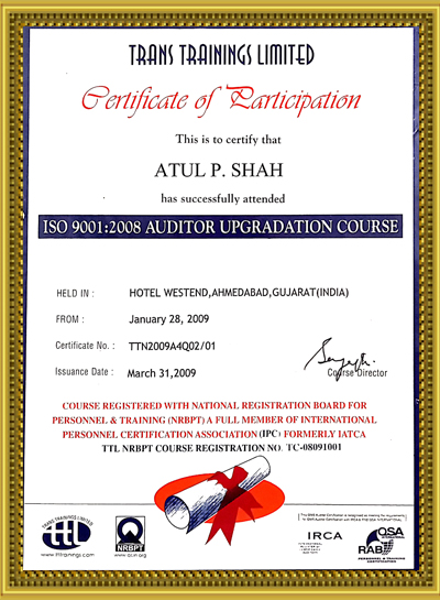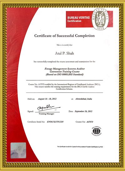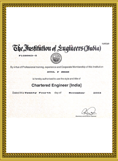 Mr. Atul Shah has done B.E. Mechanical & MBA Marketing from premier institutes of Ahmedabad viz. L. D. Engineering & Nirma Institute of Management respectively. Additionally Acquired Fellow Membership of the Institution of Engineers of India. The same Institute has also Authorized and given Title of Chartered Engineer (India).